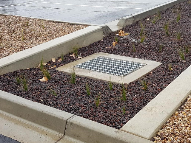 SVC worked with project contractor State Plant Hire to deliver a large-format custom drainage pit, purpose-built to suit the site’s sloping conditions. The custom drainage pit acts as a flow control element, redirecting water overflow from the channel into the newly-created wetland on-site. Installation of the custom-made complementary pipe grill ensures the prevention of litter and debris from entering the pit and waterway.
