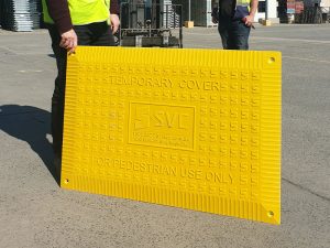 Temporary Pit Covers are a non-permanent, easy-install solution to quickly cover up exposed pits and trenches on job sites, reducing the risk of injury to workers and pedestrians from slipping or falling.