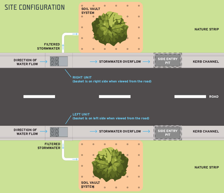 This helps to prevent outlet blockages while ensuring clean stormwater reaches the tree root zone.